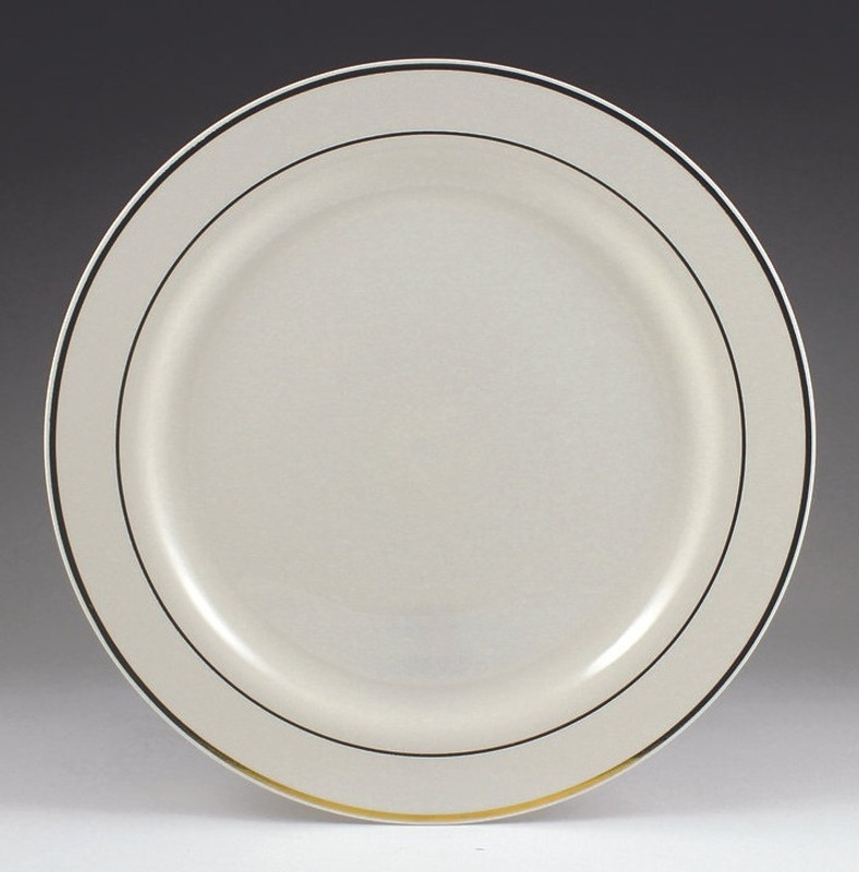 Add some flair to your party table with these Ivory & Gold Luncheon Plates! These heavy duty plastic, cream color plates feature gold trim for added style! Package includes 12 count 9 inch plates.
