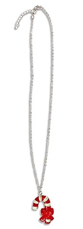 Complete your festive look with this Christmas Polyresin Novelty Necklace or give as a gift! Available with a Candy Cane or Christmas Tree pendant, this silver tone thin chain has a polyresin pendant. Desired style not guaranteed. Package includes 1 count necklace measuring 15in. Pendant measures about 1.25in.