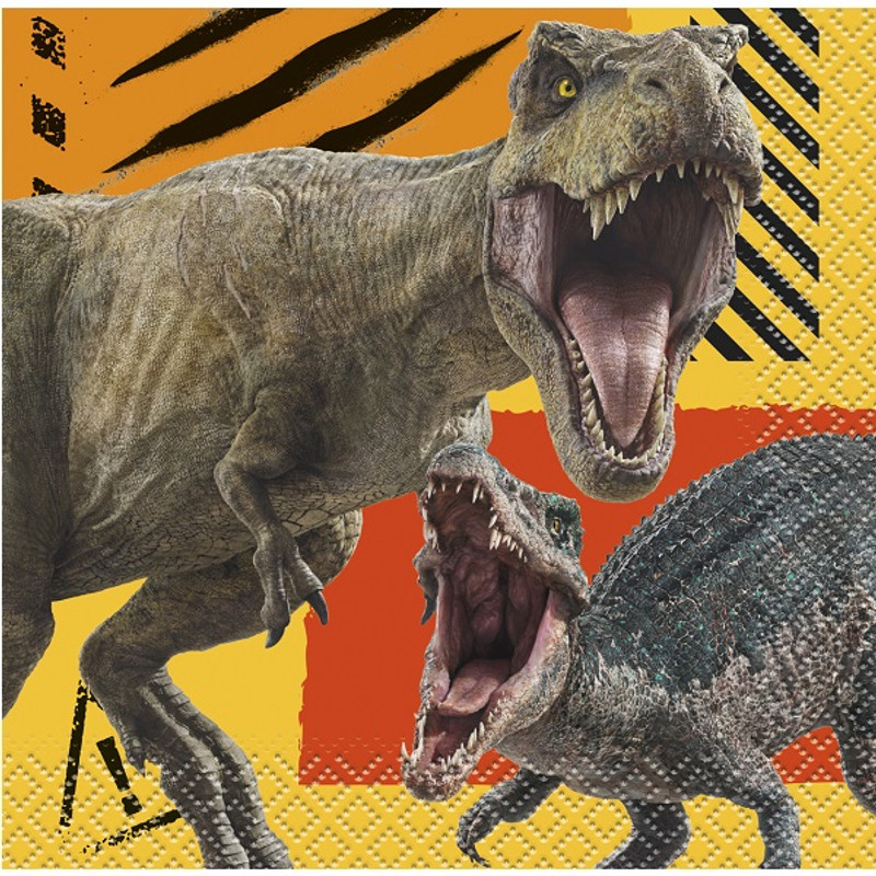 Complement your party drinks in scary style with these Jurassic World Dominion Beverage Napkins! These small paper napkins feature two of the dinosaurs from the movie. Package includes 16 5in x 5in napkins.