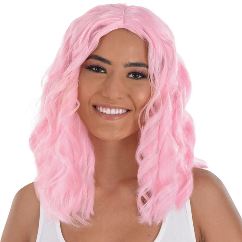 Description Give yourself a lovely makeover with this Light Pink Body Wave Wig! This pretty pink, synthetic hair wig features shoulder length wavy locks. One size fits most. Additional Details SKU: PT_0192937431993