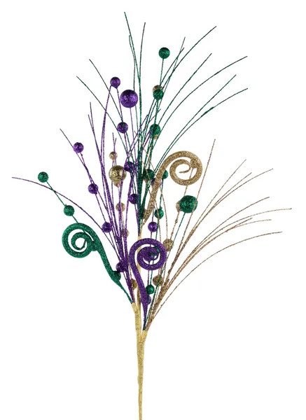 Give your Fat Tuesday wreaths and centerpieces some stylish shimmer with this Mardi Gras Coil and Ball Spray! This spray features glittery purple, green, and gold coils, balls, and monofilament. Measures 30in.