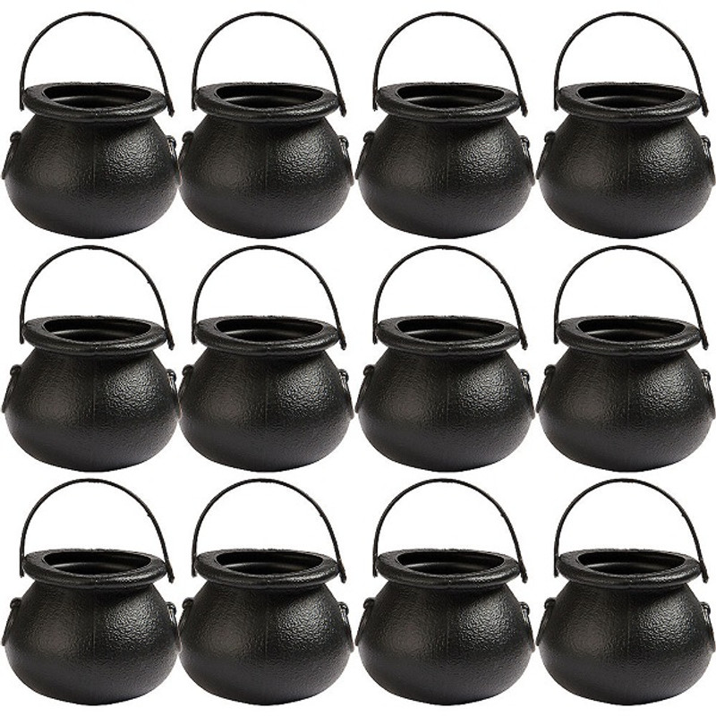 Send your Halloween party guests home with these Mini Black Cauldron Favor Containers filled with candy and small snacks! These plastic containers feature a mini black witch's cauldron design. Package includes 12 - 2.5in x 2in containers.