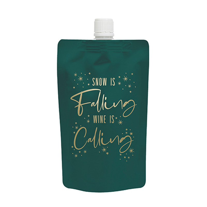 Let your Christmas guests enjoy their favorite holiday beverage in these Modern Christmas Drink Pouches! These forest green plastic pouches feature a twist on top and Snow Is Falling Wine Is Calling in metallic gold letters. Package includes 3 8fl oz pouches.