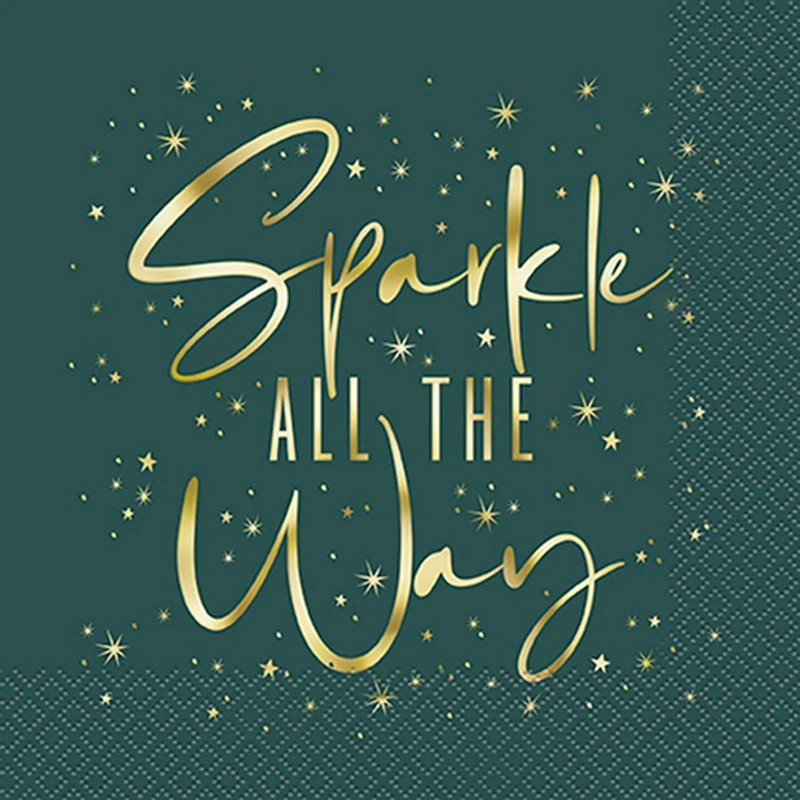 Make your holiday table setting shine with these Modern Christmas Sparkle Luncheon Napkins! These 2-ply, forest green paper napkins feature Sparkle All The Way in metallic gold letters. Package includes 20 6.5in x 6.5in napkins.