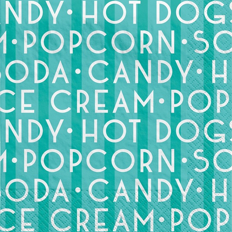 Add some vibrant color to complement your movie night party drinks with these Movie Night Beverage Napkins! These small, blue paper napkins feature assorted movie night food words in bright white letters. Package includes 40 5in x 5in napkins.