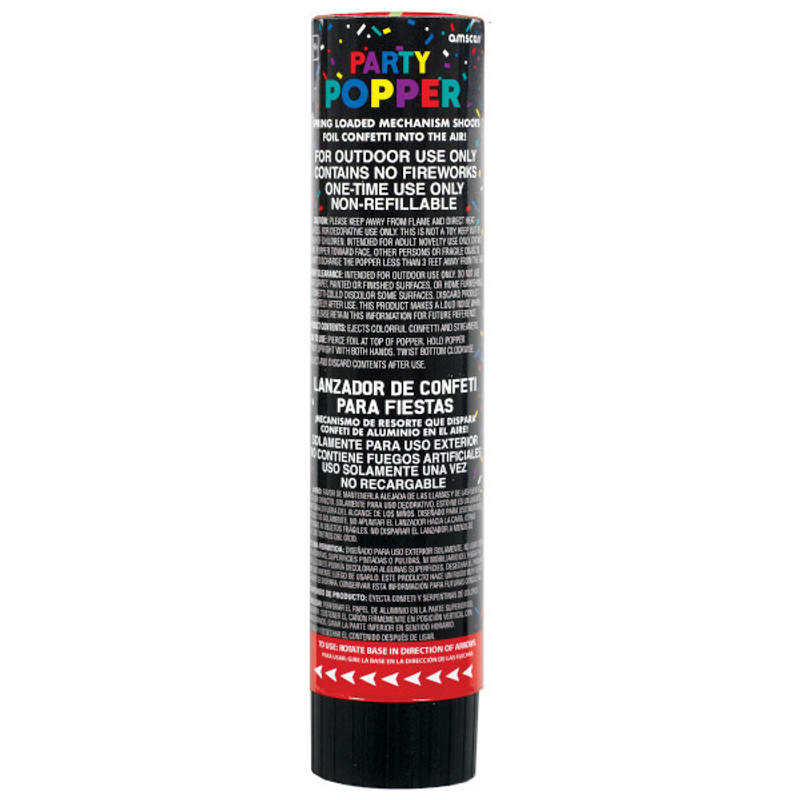 Use this Multicolor Confetti Popper to celebrate your special occasion! This twist and release popper features multicolor foil confetti inside. Great for birthdays, weddings, graduations, and more! Measures 8in.