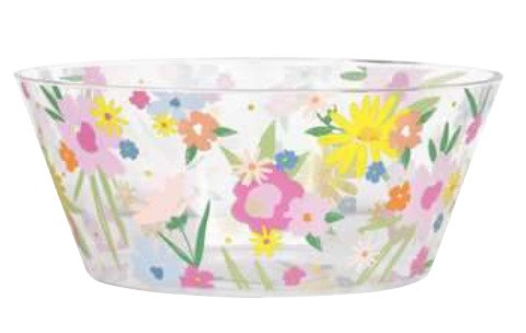 Serve your favorite Easter themed treats and snacks in this Spring Garden Plastic Serving Bowl! This clear plastic bowl features a wrap around design of colorful flowers. Measures 9.75in in diameter, 4.25in tall, 3.87 qt.