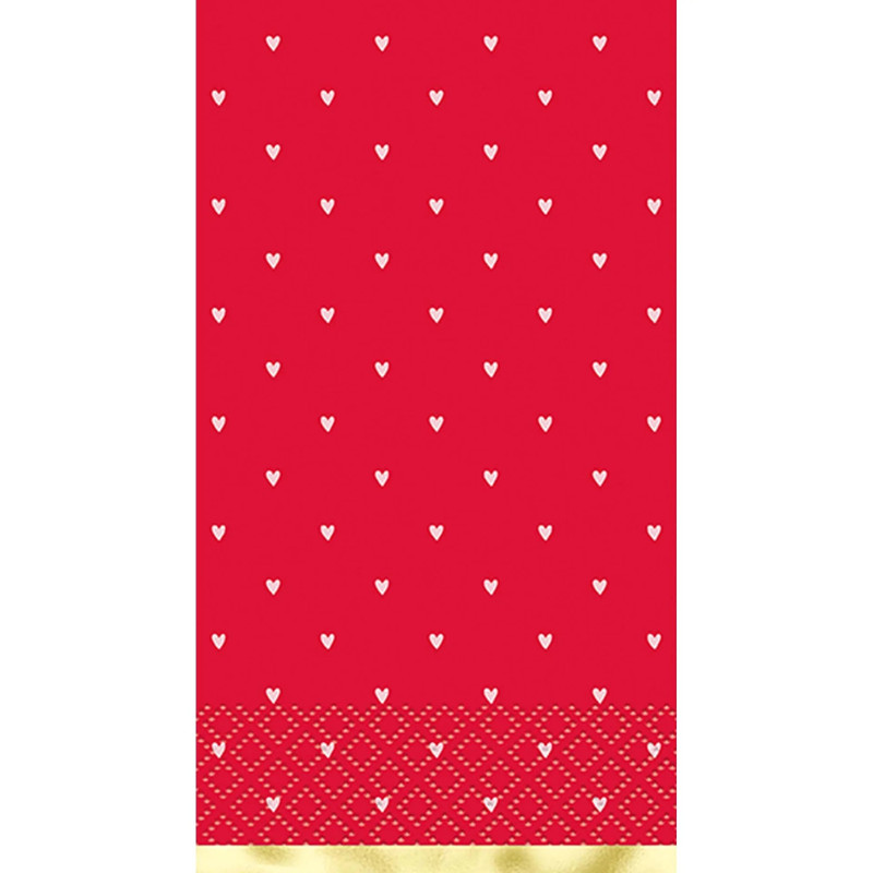 Make your Valentine’s Day gathering extra special with these Valentine Foil Heart Guest Napkins. Featuring a red background adorned with tiny white hearts and a gold foil trim, these 3-ply paper napkins add a touch of elegance and sparkle to your celebration. Package includes 16 count, 7.75in x 4.25in napkins.