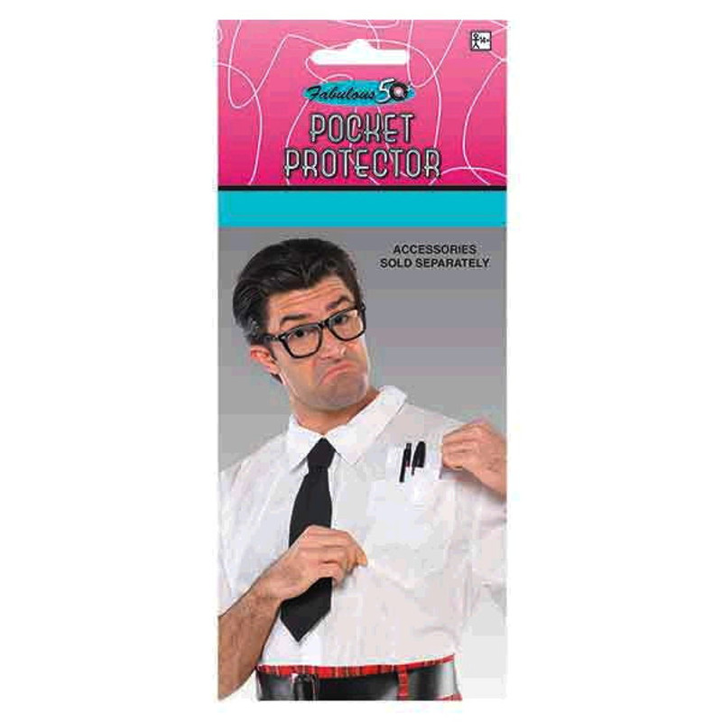 Don't let your pens ruin your shirt! Wear this Nerd Pocket Protector! This vinyl protector fits any standard shirt pocket and fits up to 6 pens. Additional accessories not included.