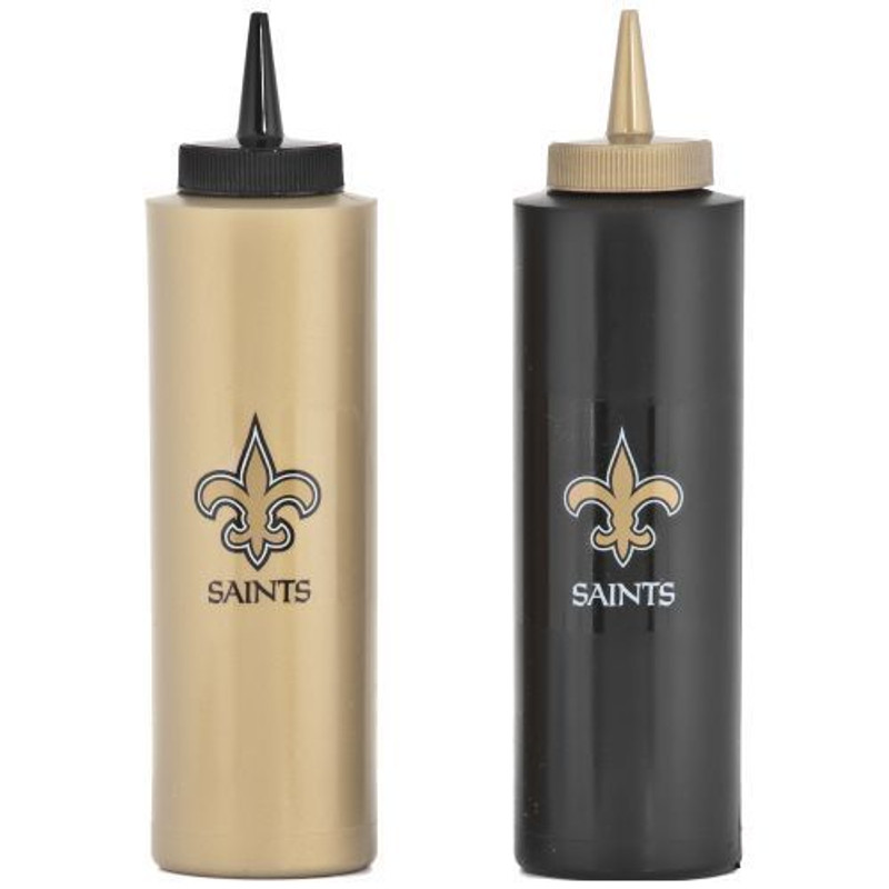 Add some football flair to your table setting with this New Orleans Saints Condiment Set! This set features gold and black plastic containers with twist on lids and the Saints logo. Package includes 2 – 6.25in condiment containers.
