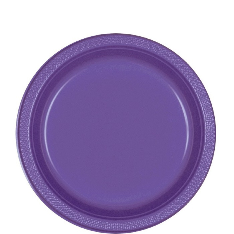 Bring on dessert with these chic New Purple 7in Round Plastic Plates! These sturdy plates feature raised edges with a braided trim design! Perfect for appetizers, desserts, and party snacks! Package includes 20 ct 7in plates.