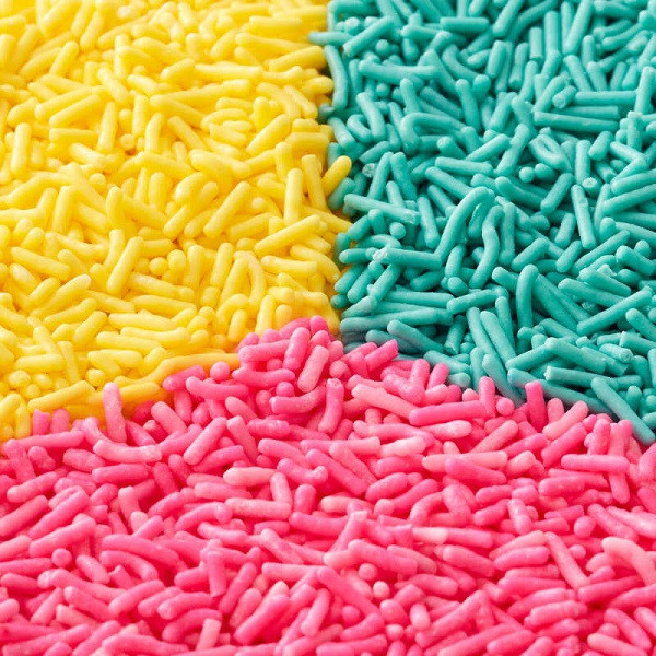 Brighten up your springtime celebration sweet treats with this Easter Yellow, Teal, & Pink Jimmies 3-Cell Sprinkle Mix! These edible sprinkles feature eye-catching pink, yellow, and teal colors. Net WT 6.35oz.