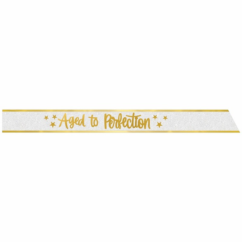 Dress yourself up in stunning style for your birthday with this Over the Hill Golden Age Sash! This glittery white sash features metallic gold borders with Aged To perfection in gold letters. Measures 30in x 3.5in. One size fits most.