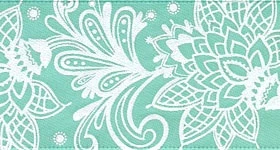 Add texture and color to your gifts, floral arrangements, bows, and craft projects with this Glitter Lace Satin Ribbon! This tiffany blue polyester satin ribbon features an intricate white floral pattern overlaid with iridescent glitter. Measures 1.5in x 3yds.