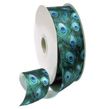 Add texture and color to your gifts, floral arrangements, bows, and craft projects with this Peacock Plumes Ribbon! This polyester ribbon features a pattern of green peacock feathers. Measures 1.5in x 3yds.