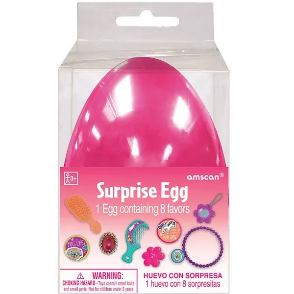 This Pink Surprise Egg makes a great Easter game prize or party favor! This 2 piece plastic egg features a metallic pink finish and includes 8 favors inside. Measures 4in.