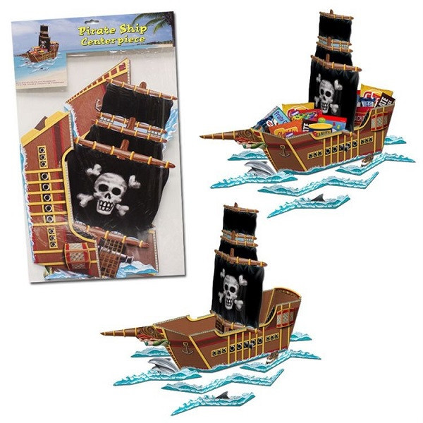 Fill up this Pirate Ship 3D Centerpiece with party treasure! This colorful cardstock centerpiece features a pirate ship with that can be filled and wave table accents. Measures 18.5in x 25.5in.