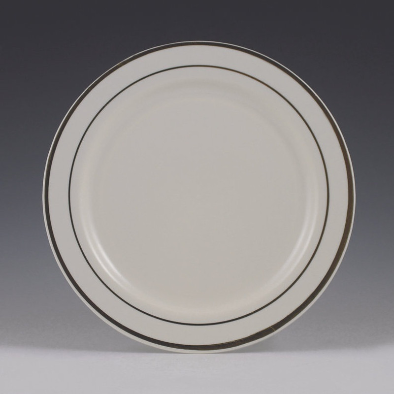 Add some flair to your party table with these Ivory & Gold Dessert Plates! These heavy duty plastic, cream color plates feature gold trim for added style! Package includes 12 count 6 inch plates.