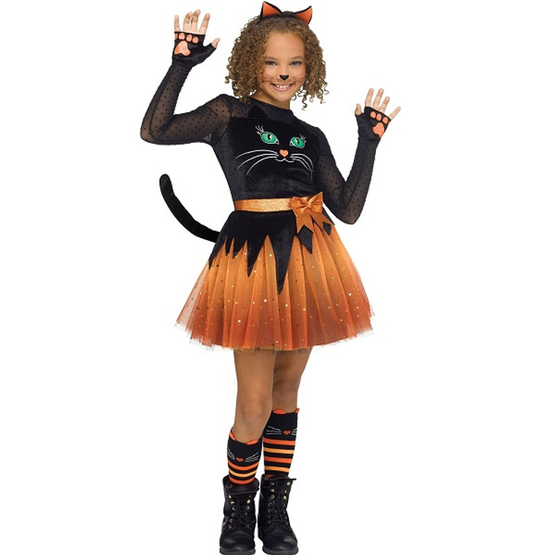 She'll be the cat's meow in this Pretty Pussycat costume! This costume features a dress, tail, mitts, ear headband, and knee socks. Boots and makeup not included. Small fits 4 to 6, Medium fits 8 to 10, and Large fits 12 to 14.