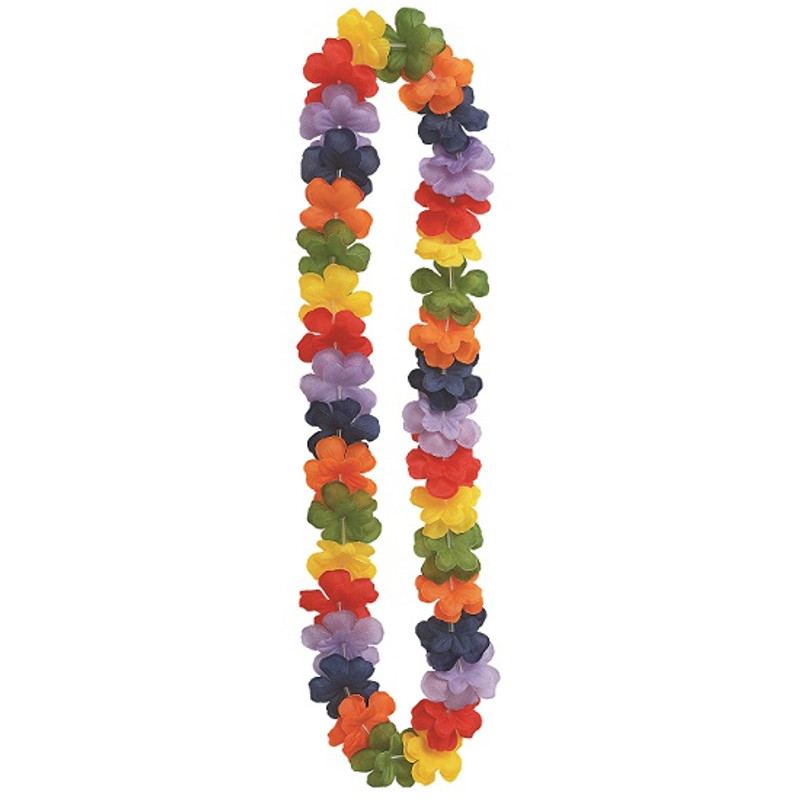 Add a floral touch to your Hawaiian attire with this Rainbow Flower Lei! This stunning lei features multi-colored fabric flowers affixed to a white string. Perfect for your luau or beach party! Lei measures 40in.
