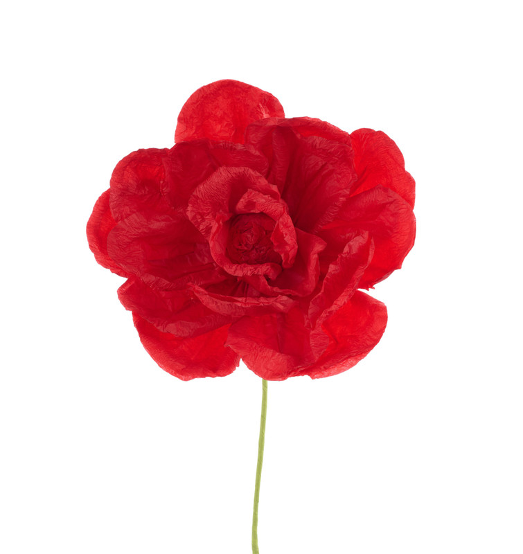 Add a pop of color to your wreaths, centerpieces, baskets, and more with this Paper Rose Pick. This red paper rose measures about 9in in diameter, 26in long with green paper covered wire stem.