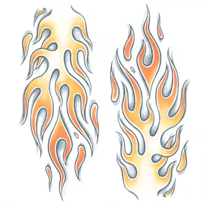 Turn heads with the Extra Large Flames Temporary Tattoo. Featuring flames in red and orange with a black outline, this design is perfect for covering both arms. Includes 2 flame shapes on one tattoo sheet, each flame measuring 4.5in x 11in.