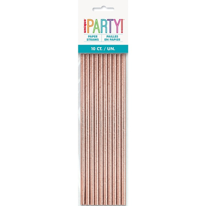 Description Glam up your party drinks with these Rose Gold Paper Straws! These sturdy paper straws feature a stunning metallic rose gold design. Package includes 10 8.25in straws. Additional Details SKU: PT_0011179629053