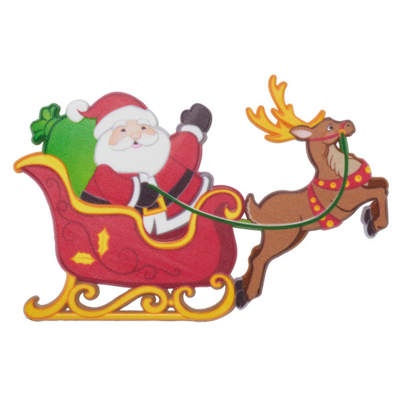 Brighten up your Christmas holiday cake with this Santa & Reindeer Layon! This colorful plastic cake decoration features Santa in his sleigh with a reindeer in front. Measures 5in x 3in.