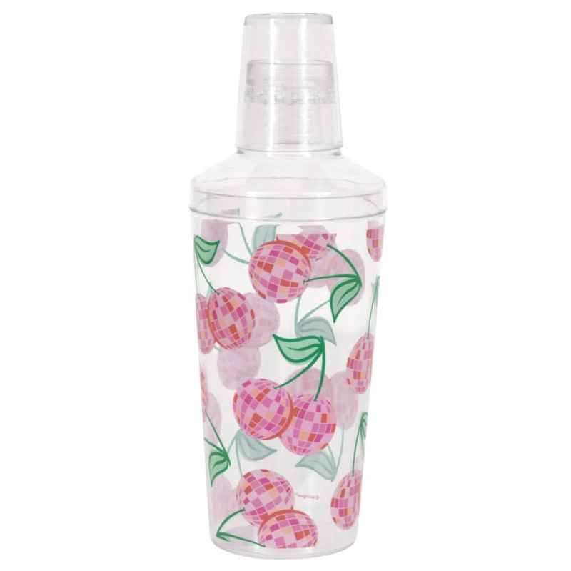 Shake things up in style with the Summer Disco Plastic Cocktail Shaker. Made from clear plastic, this shaker features a playful wrap around print of pink disco ball shaped cherries. Perfect for summer get togethers, bachelorette parties, or retro celebrations. Measures 9in, 20oz.