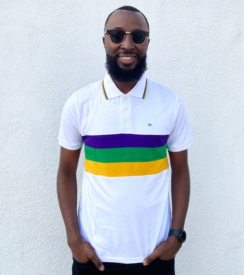 You can dress your Mardi Gras best with this Adult Mardi Gras Stripe Short Sleeve White Polo Shirt. This short sleeve shirt is white with small purple, green, and gold stripes along the collar and large stripes across the chest, and features three white buttons. Available in X Small, Small, Medium, Large, X Large, 2X Large, and 3X Large.