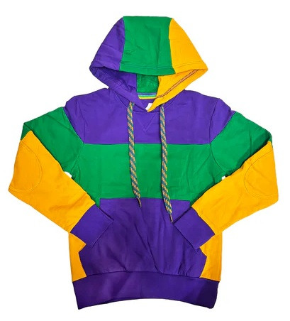 Get ready for Mardi Gras with the Youth Mardi Gras Rugby Wide Panel Hoodie! This hoodie features purple, green, and gold panels along with a purple pocket. The purple, green, and gold laces complete the fun design, making it the perfect choice for celebrating in comfort and style!