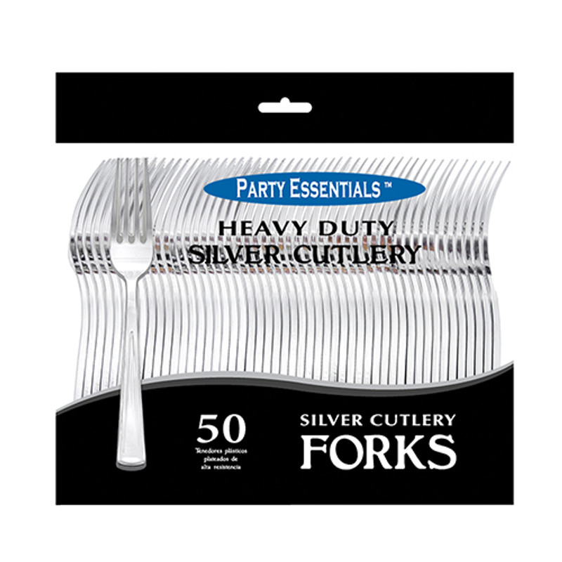 Let your party guests enjoy using these Silver Forks to eat with! These heavy duty plastic forks feature a shiny metallic silver finish. Package includes 50 7.25in forks.