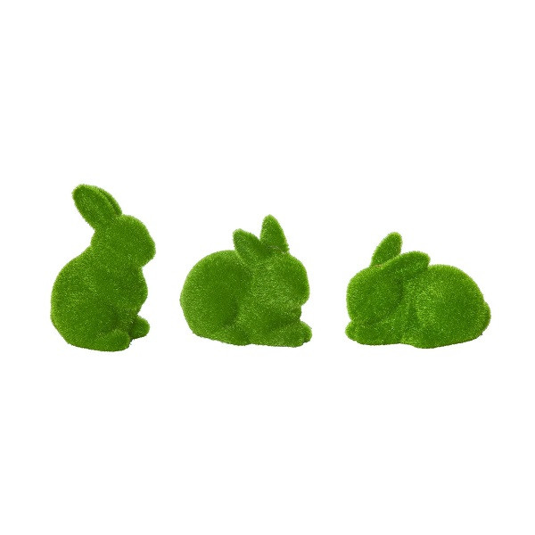 Add a cute and charming touch to your Easter decorations with this Small Moss Flocked Bunny! This ceramic bunny features a soft moss green covering. Includes 1 4in x 2in bunny, style may vary.