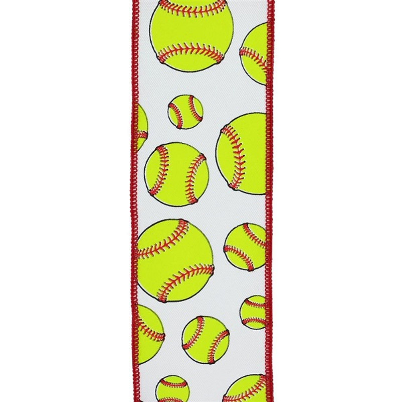 Description Create sporty looking wreaths and more with this Softball Ribbon! This white ribbon features yellow and red softballs with red borders. Measures 2.5in x 10yds. Additional Details SKU: PT_0885673968426