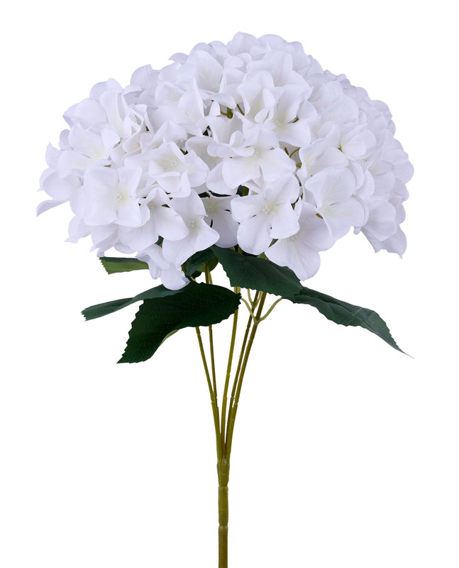 Create decorative masterpieces with this Fabric Hydrangea Bush Pick! This pick features five plastic stems of white fabric hydrangea flowers and green fabric leaves. Use for accenting centerpieces, vases, wreaths, and more! Pick measures 16in.