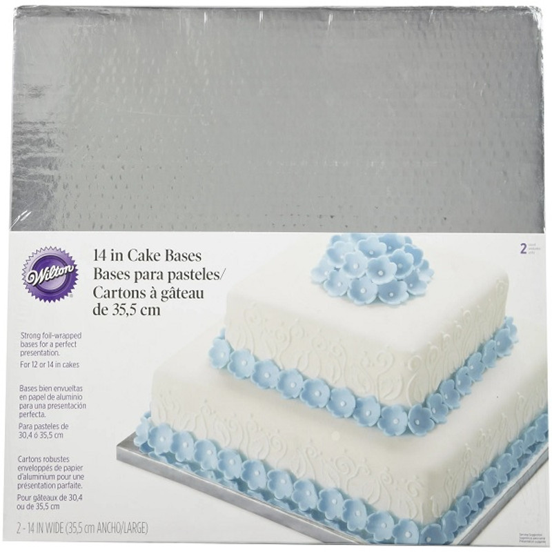 Present your cake creations in eye-catching style with these Square Silver Cake Boards! These square boards feature a shiny silver wrapping. Package includes 2 - 14in boards.