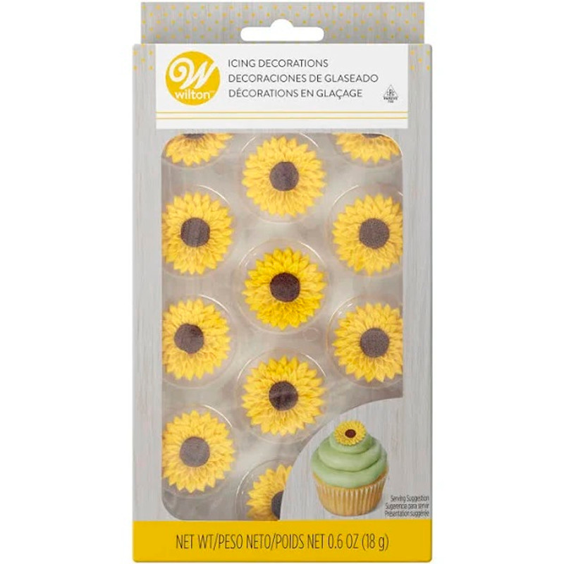 Add a fun fall look to your sweet treats with these Sunflower Icing Decorations! These edible decorations feature a classic yellow and brown sunflower design. Fun to use at birthdays and more! Package includes 12 1in decorations.