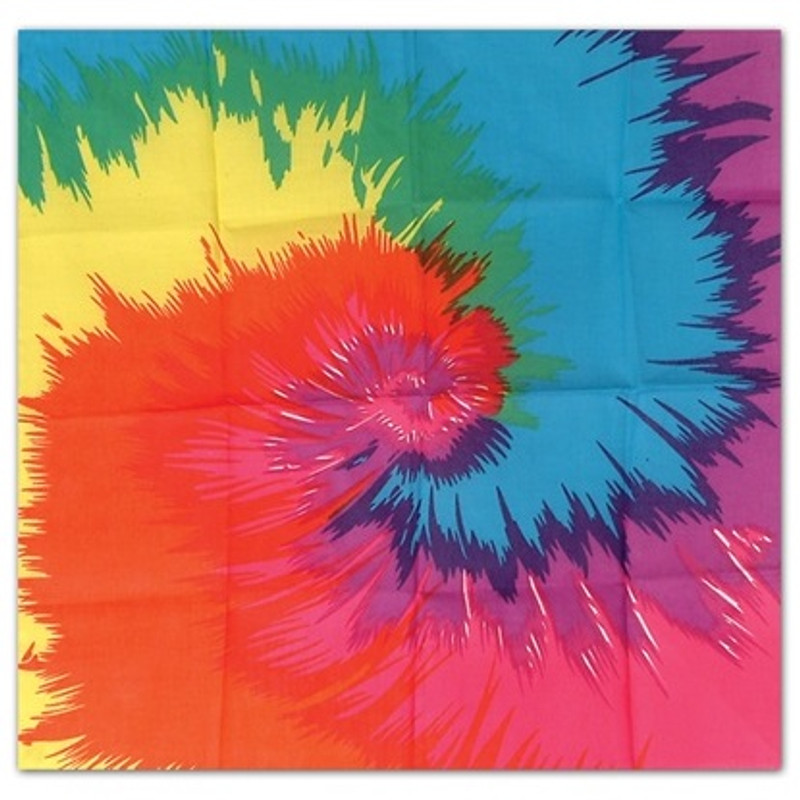 Description Spread the love when you wear this Tie Dyed Bandana! This fabric bandana features a vibrant tie dye print on one side and white on the other. Measures 22in x 22in. Additional Details SKU: PT_0034689607618