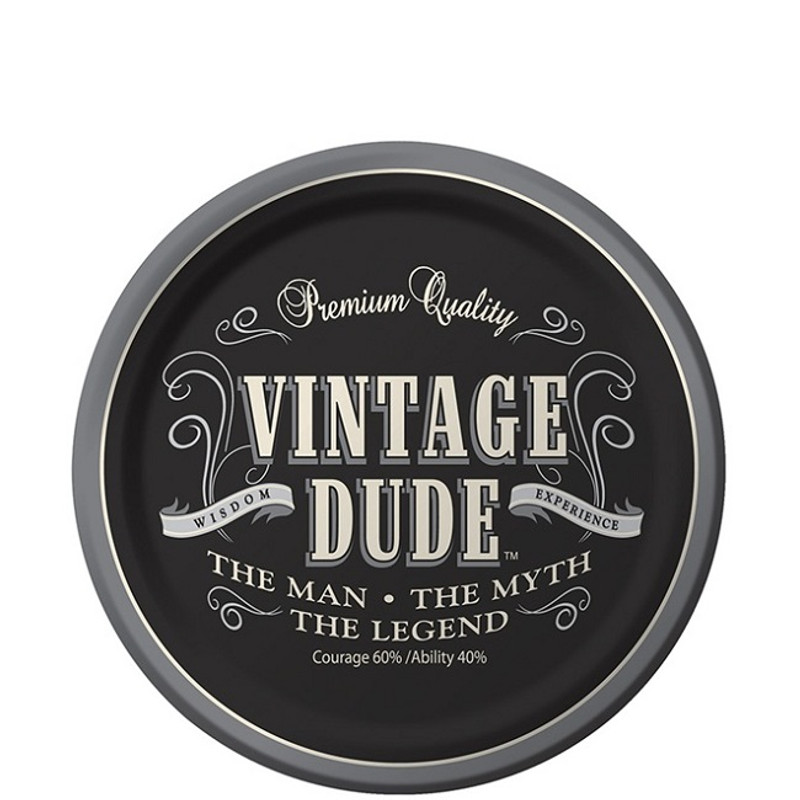 Serve some classic party desserts with these Vintage Dude Luncheon Plates! These black paper plates feature a grey and white border with a nostalgic “Vintage Dude” design. Package includes 8 – 7in plates.
