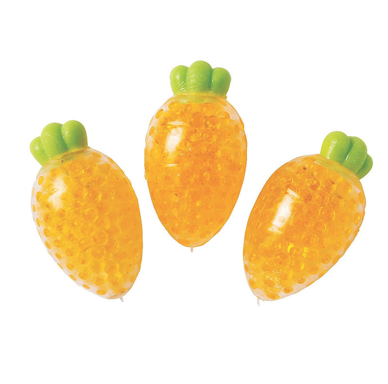 This Easter Carrot Gel Bead Ball Squeeze Toy works well as a stress toy or as an Easter Basket stuffer! This vinyl, carrot shaped toy is filled with orange squishy gel beads. Package includes 1 count toy measuring 4in.