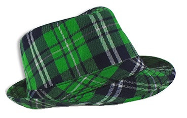Top off your St. Patrick's Day look with this Green Plaid Fedora! Featuring a plaid pattern with shades of green and white, this stylish hat adds a festive touch to your celebration. Measures 9in x 5in.