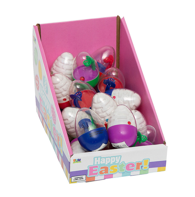 A Maze or Basketball Plastic Egg Game makes for a fun Easter basket trinket and fidget toy. Available in multiple colors, this plastic egg contains either a maze or basketball game. Desired color and game not guaranteed. Package includes 1 count toy measuring 3in.