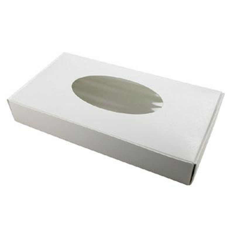 This White Half Pound Folding Window Candy Box is the perfect way to give your special candies and chocolates to friends and family! This white cardboard box features a clear plastic window. Measures 7.5in x 4in x 1.25in.