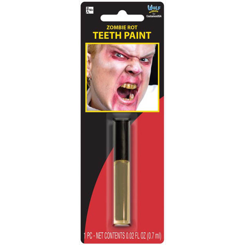 Use this Zombie Rot Teeth Paint to look like you just stepped out of a Walking Dead episode! This non-toxic greenish-brown paint features a brush for easy application. Net WT .02 fl oz.